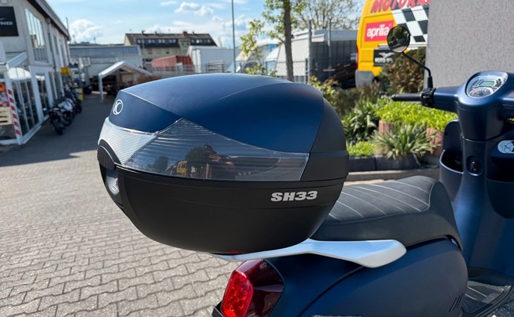Praktisch: Unter der Sitzbank findet sich ausreichend Stauraum für Einkäufe oder Taschen, zusätzlich sorgt das serienmäßige Topcase für mehr Flexibilität im Alltag.